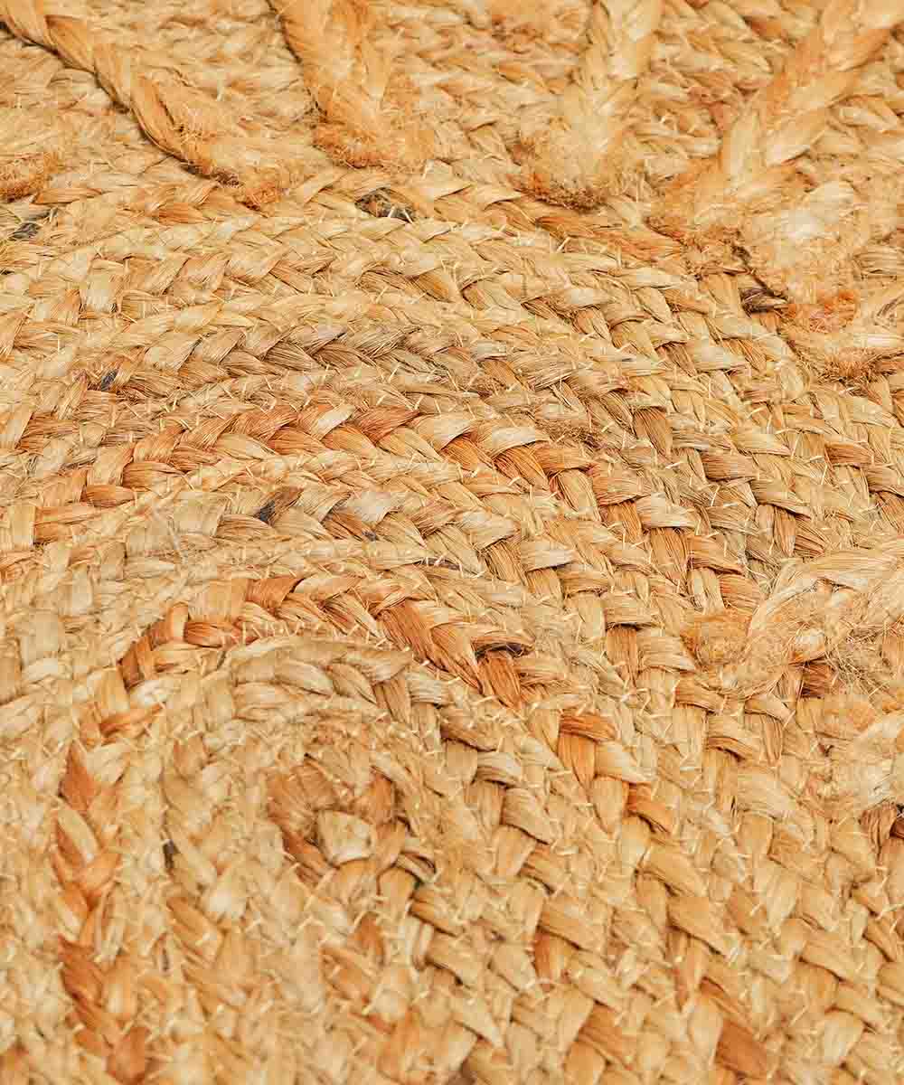 The natural honey tones of jute and the dimensional braided artwork create a soft, grounded feel — adding depth and warmth without overwhelming the space. Durable, low-pile, and artisan-crafted, this mat blends seamlessly with modern, earthy, and neutral interiors.