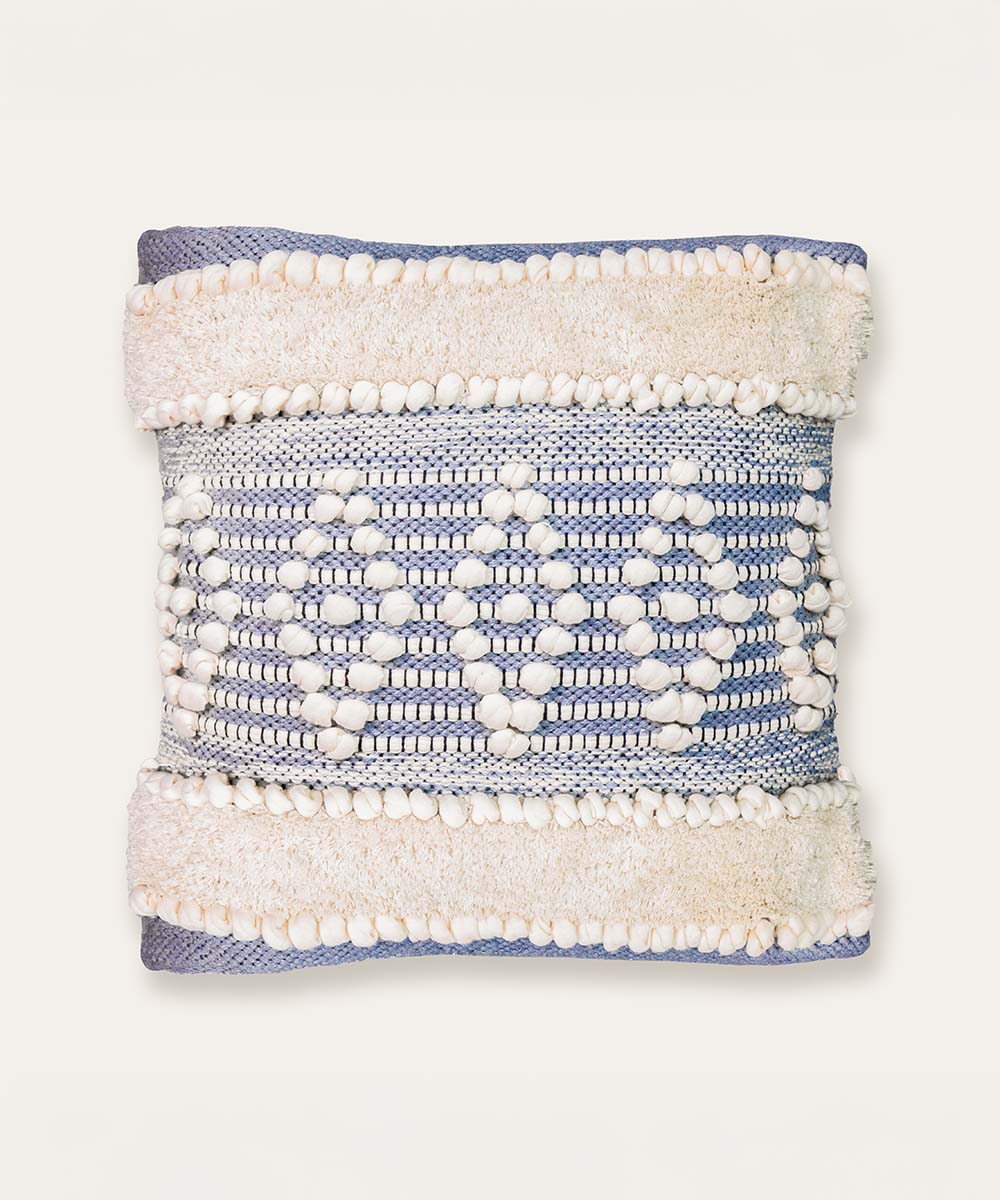 Texture tells a story in The Mira Hand Tufted Bands Cushion — where sculpted 3D Hand Tufted knots form gentle diamond geometric patterns, framed by plush cotton striped bands on each side. Every detail is woven with intention, creating a tactile landscape that feels both elevated and inviting.
