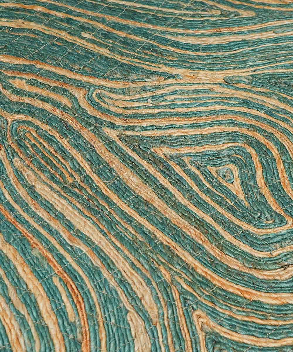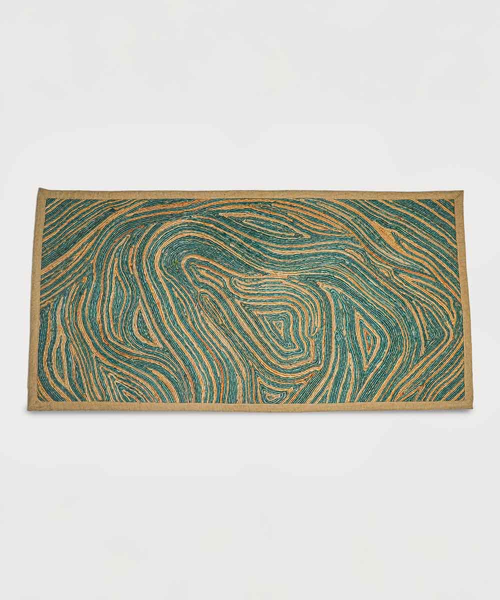 Emerald Canvas of Currents – Hand Made Artisan Jute Rug | 90% Jute 10% Cotton | 28 × 56 in
